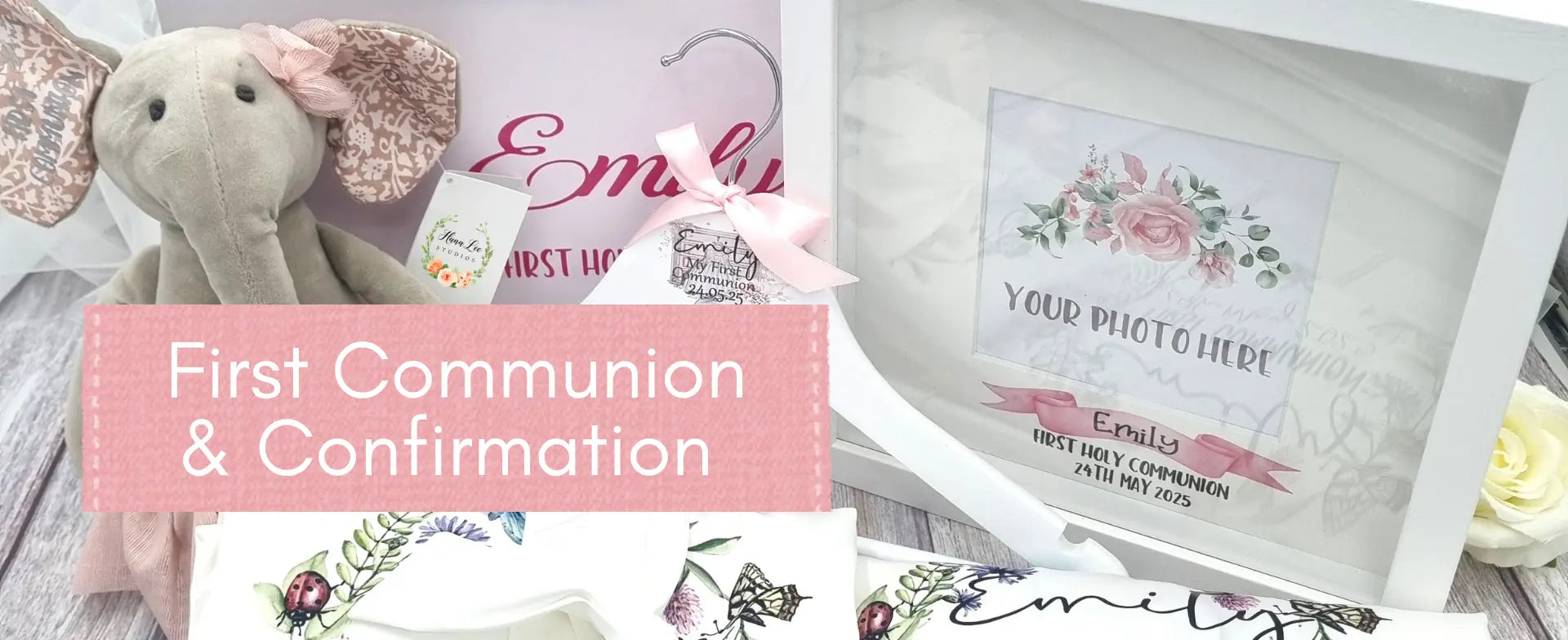 Personalised First Communion gifts, handmade in Ireland and customised with names and dates. Beautiful Communion keepsakes for boys and girls, made to order in Co. Meath.