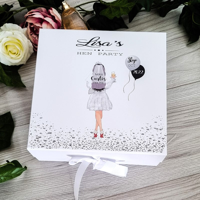 HanaLee's beautiful luxury white keepsake boxes make the perfect gift for your bride to be! Personalise your bride with hair colour, name and hen party details and fill the box with photos and messages from all her friends and family. We are certain this is one she will keep forever!