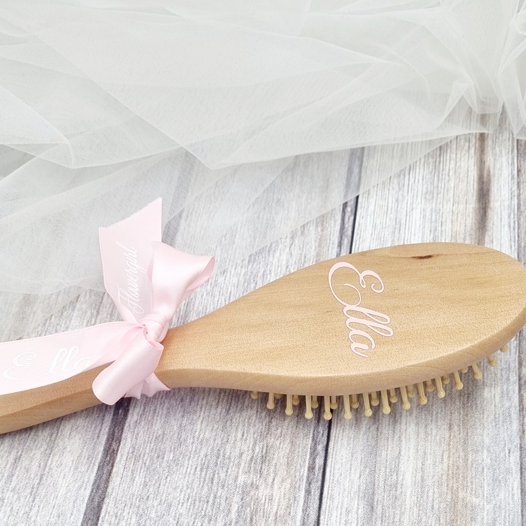 Our personalised wooden hairbrushes are a lovely gift for your flower girl. Add a touch of magic to your little flower girl's day with our Personalised Flower Girl Brush.