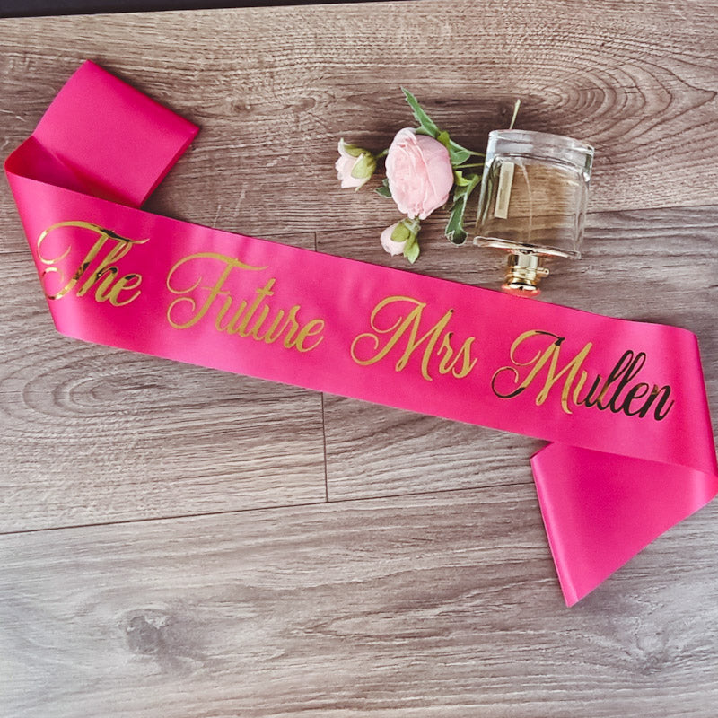 Celebrate in style and let the world know it's your time to shine! Let the bride to be stand out from the crowd with her own personalised hen sash. HanaLee's personalised party sashes are available in hot pink, white or black.